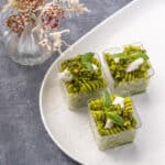 GOOD FOR 6-8 PEOPLE. Contains: 5 avocado feta club, 5 grilled chicken club, 5 smoked salmon, 5 tuna club. TOTAL 20 PIECES
