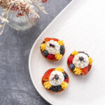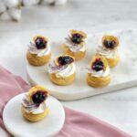 whipped white chocolate ganache - Chantilly cream - date syrup - black currant jam - choux pastry - minimum order 6 pcs