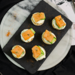 white round bread - cream cheese chives - cucumber slice - smoke salmon - minimum 6 pcs.