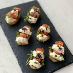 white baguette - baby Rocca - burrata cheese - cherry tomato - balsamic - pesto sauce - minimum 6 pcs