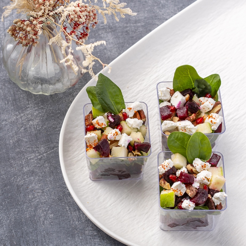 Beetroot Salad14 Inc. Vat Decrease quantity Beetroot Salad quantity Increase quantity Add to cart Category: Salads Description Reviews (0) Description Beetroot, Green Apple, Pomegranate, Spinach, Feta cheese, Walnuts, Sesame, Vinaigrette Reviews There are no reviews yet. Be the first to review “Beetroot Salad”You must be logged in to post a review. Related products Quinoa Salad Min Order: 6 PCS Caesar Salad Min Order: 6 PCS Burrata Tomato Salad Min Order: 6 PCS Crispy Bomba Shirmp Salad Min Order: 6 PCS