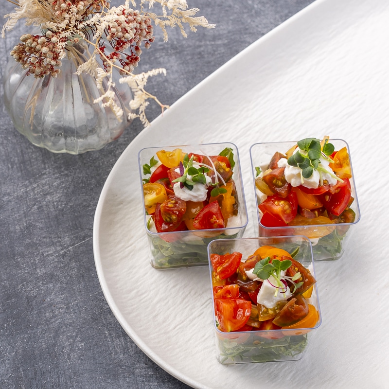 Burrata Tomato Salad16 Inc. Vat Decrease quantity Burrata Tomato Salad quantity Increase quantity Add to cart Category: Salads Description Reviews (0) Description Baby Rocca, Heirloom Tomato, Stracciatella, Basil Pesto, Basil Reviews There are no reviews yet. Be the first to review “Burrata Tomato Salad”You must be logged in to post a review. Related products Caesar Salad Min Order: 6 PCS Avocado Corn Salad Min Order: 6 PCS Quinoa Salad Min Order: 6 PCS Crispy Bomba Shirmp Salad Min Order: 6 PCS