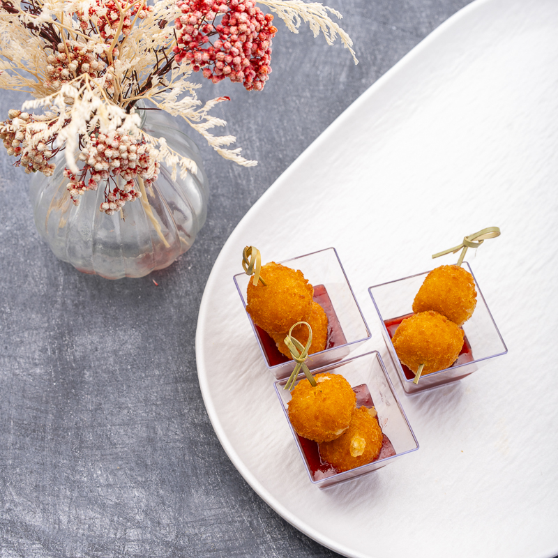 Fried Brie Ball10 Inc. Vat Decrease quantity Fried Brie Ball quantity Increase quantity Add to cart Category: Mini Cups Description Reviews (0) Description Brie balls, Mixed Berries Compot, Maldon Salt Reviews There are no reviews yet. Be the first to review “Fried Brie Ball”You must be logged in to post a review. Related products Potato Croquette Min Order: 6 PCS Mini Wanton Min Order: 6 PCS Bomba Crispy Min Order: 6 PCS